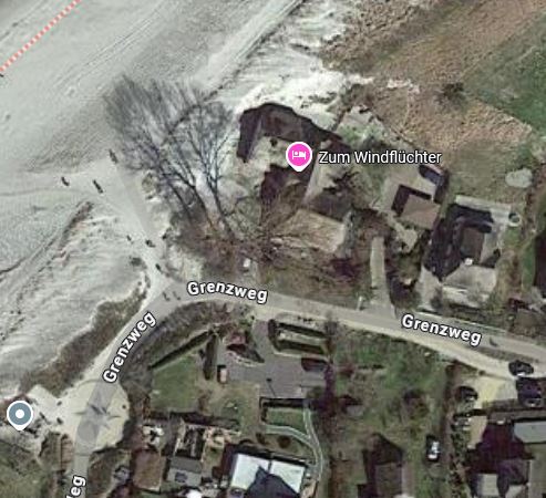 mit Blick auf das Haus am Grenzweg. Das Cafe ist seit 2017 geschlossen - schade -